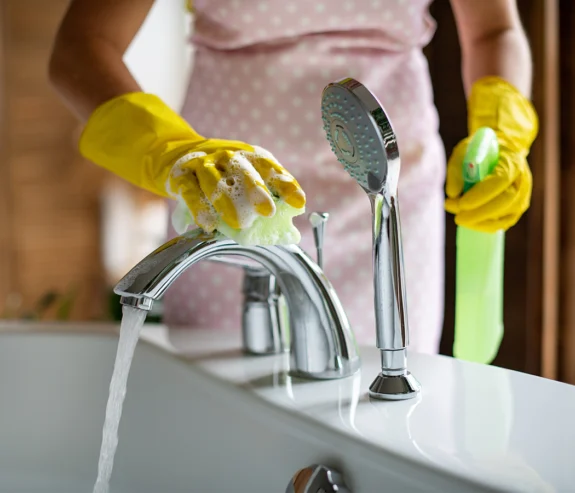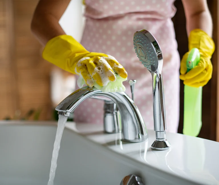 - Badrum: Vi rensar golvbrunnar (utan demontering av vattenlås), kalkar av duschväggar, rengör kakel och sanitetsbänkar grundligt.